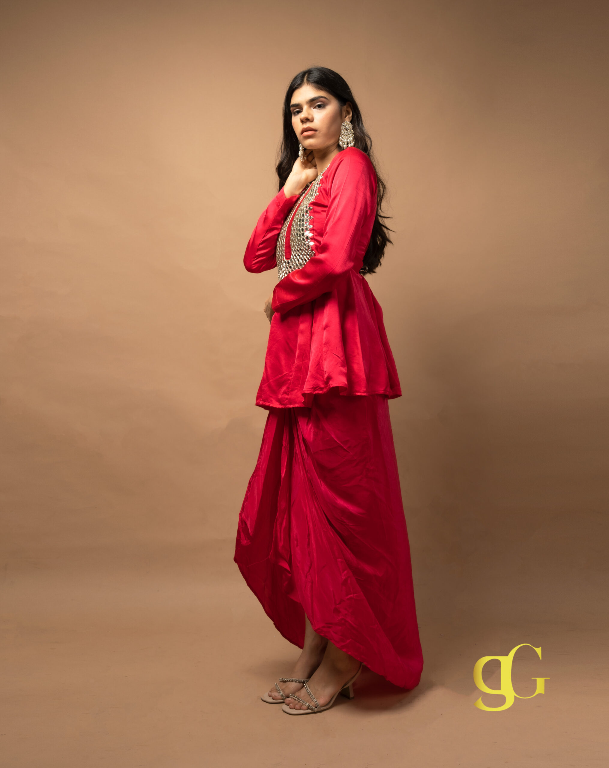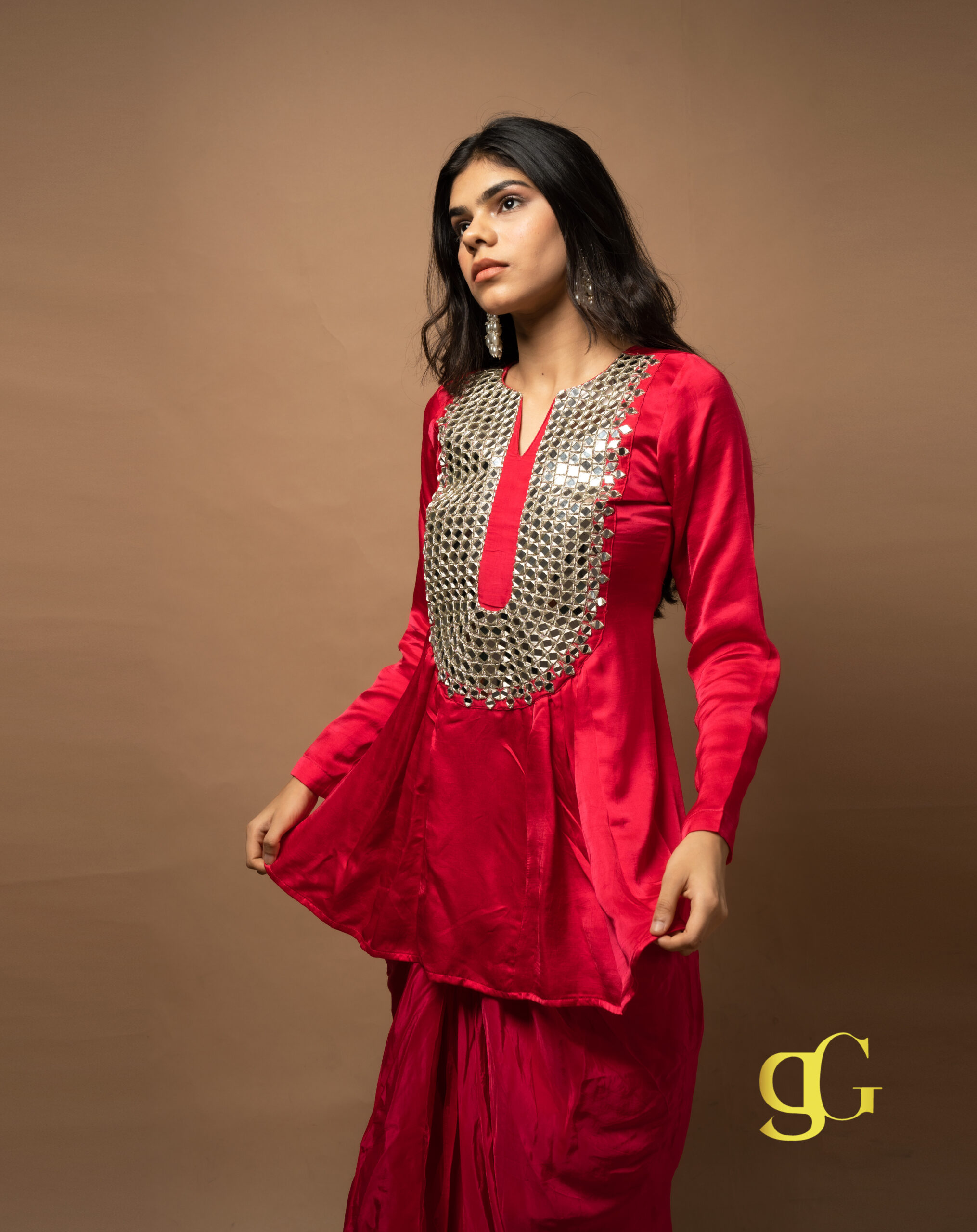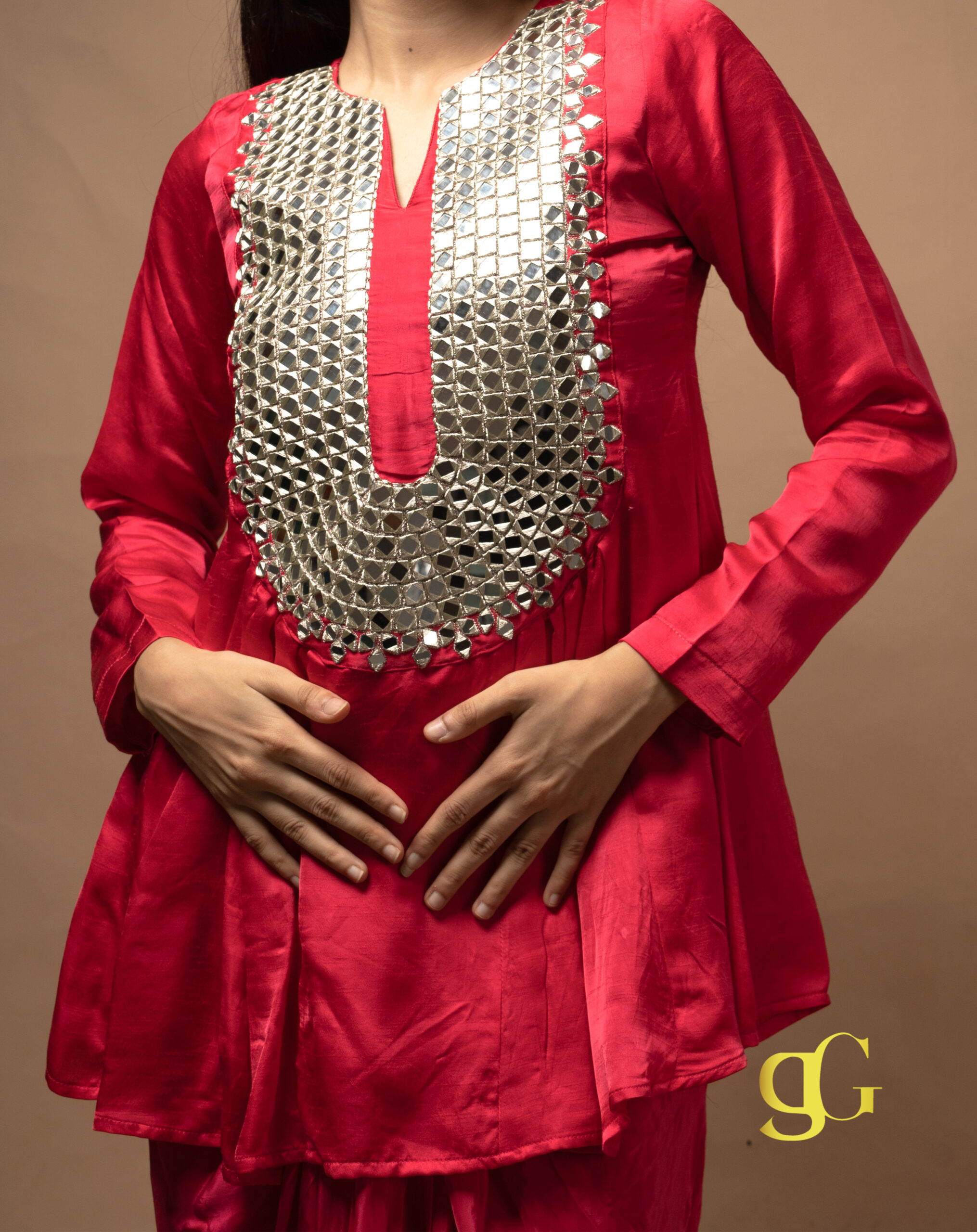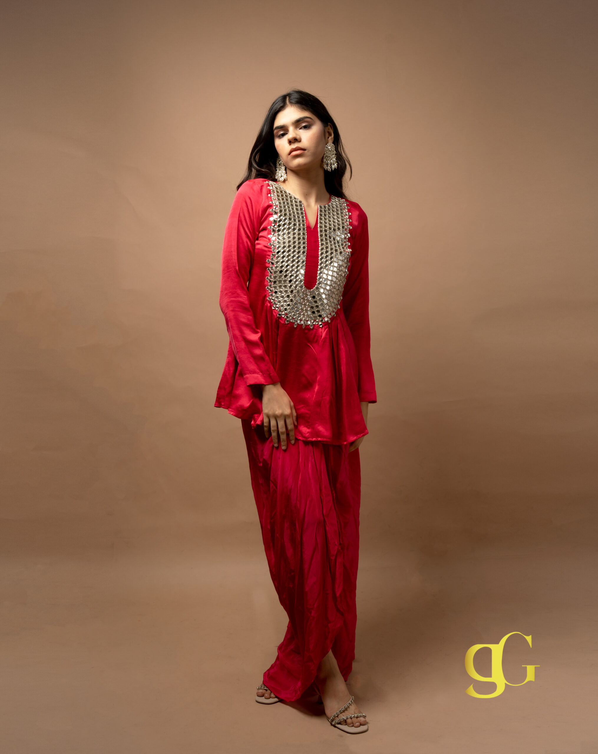 PRODUCT DESCRIPTION: VIBRANT PINK DHOTI SET WITH MIRROR-WORK KURTA, BLENDING TRADITIONAL CRAFTSMANSHIP AND MODERN SILHOUETTE FOR A FESTIVE, ELEGANT LOOK.